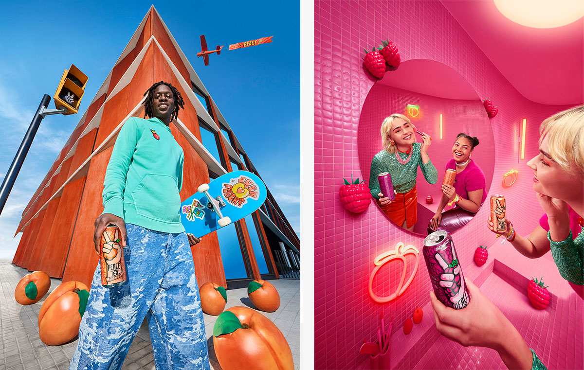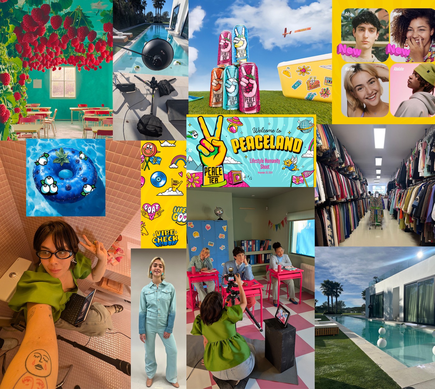 Create the imaginary, quirky world of Peaceland/Peace Tea for a Gen Z audience. Four Locations. Two days. 50 crew. Shot by Alexandra Kingo.